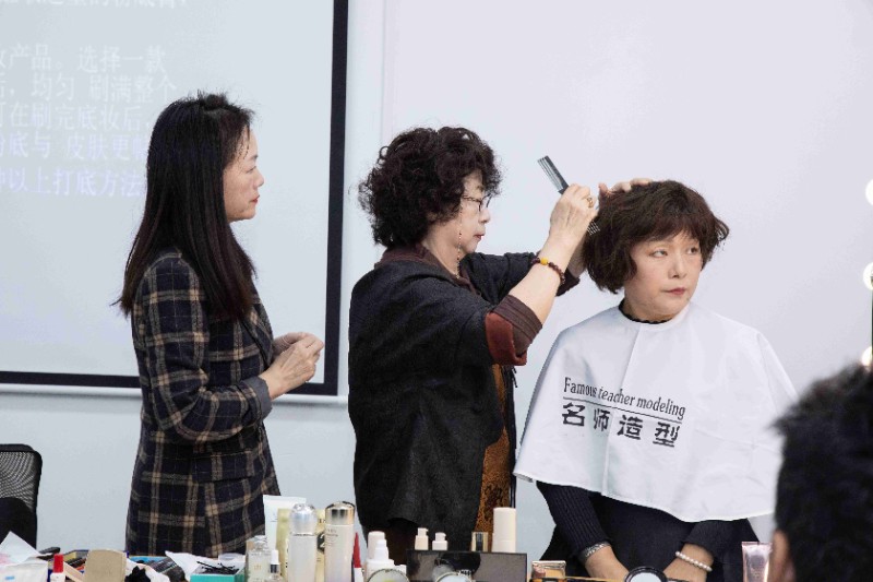模特坐在化妆台前,白老师专注而细致地为她们打造着全新的形象。当妆容完成,那效果令人惊叹。尤其是其中一位模特,经过白老师的精心雕琢,仿佛脱胎换骨一般。之前的模样已全然隐匿在这精致的妆容之下,与之前相比,差距之大令人咋舌。仿佛从平凡的路人瞬间变身成了闪耀的明星,让人几乎无法相信自己的眼睛。每一处细节都恰到好处,粉底的运用使得肌肤如瓷般光滑细腻,焕发出迷人的光彩。这不仅仅是一次化妆,更是一场美丽的蜕变之旅。