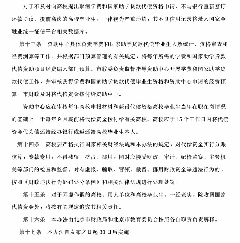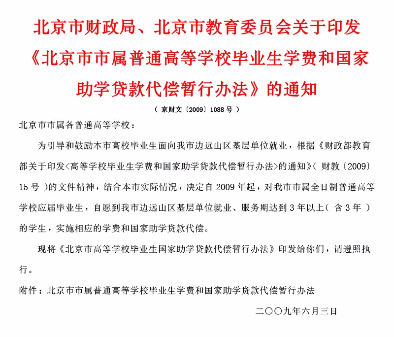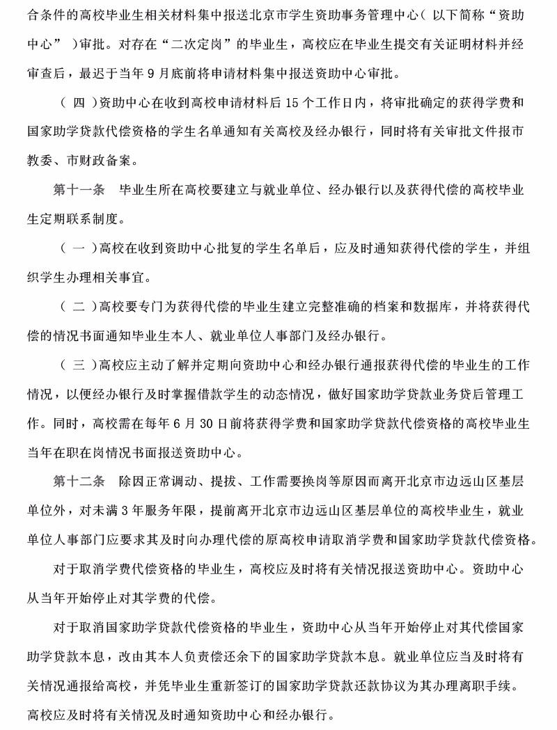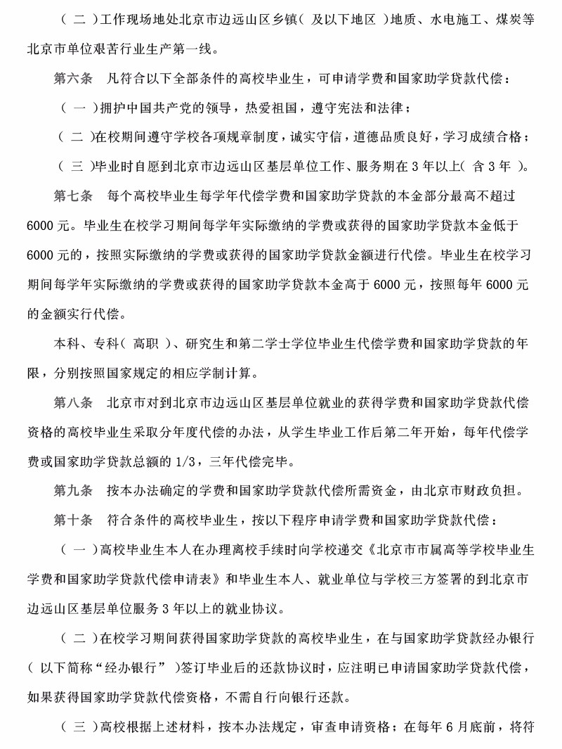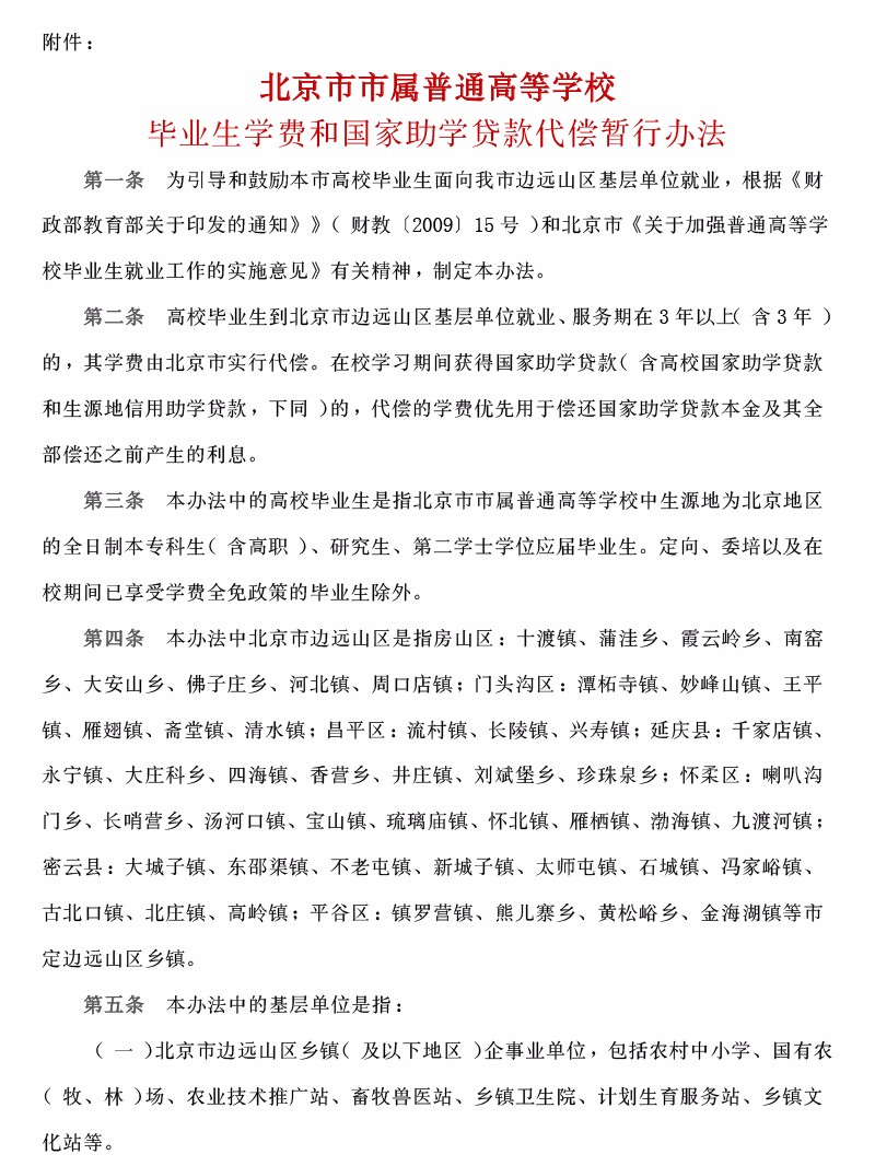 (边远山区)北京市市属普通高等学校毕业生学费和国家助学贷款代偿暂行办法
